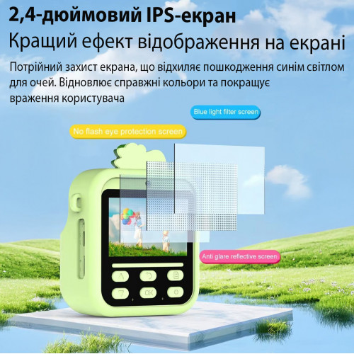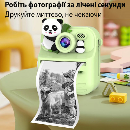 Дитячий Фотоапарат Миттєвого друку з підтримкою microSD card FullHD. S11, GREEN PANDA Зелений (11539)