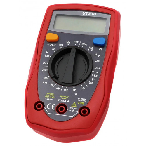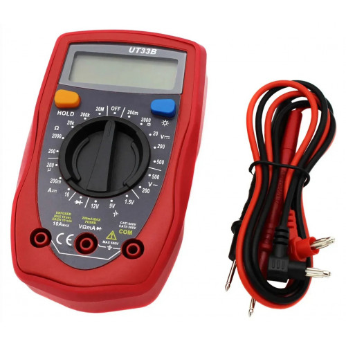Цифровий мультиметр UT33B - універсальний цифровий мультиметр з ручним вибором діапазонів вимірювань. За допомогою моделі UT33B можна легко виміряти напругу, постійний струм, опір, проводити перевірку діодів і тестування батарей.