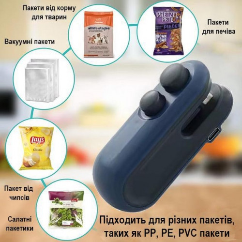 Підходить для різних типів пакетів: для зберігання, чіпсів, закусок, також із поліпропілену, поліетилену.