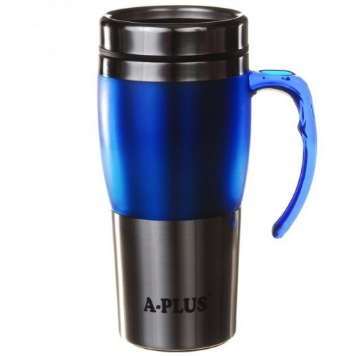 Термокухоль A-PLUS 450 мл з ручкою. Термос з нержавіючої сталі. Синій (1621)