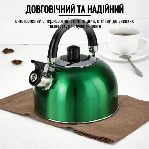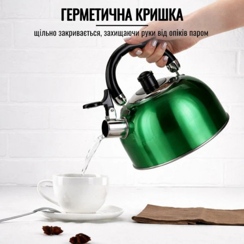 Чайник 2,5л WK-1329 A-Plus зі свистком. Нержавіюча Сталь. Зелений