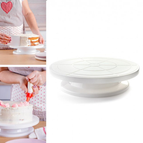 Поворотний стіл для торта чи пряника – зручний та недорогий кондитерський інвентар. Даний товар для випічки вирішує ряд завдань для майстра пекаря або господині, яка хоче порадувати близьких домашньою випічкою. Вам не потрібно бігати навколо торта або постійно крутити його на блюді, щоб розподілити крем або мастику, нанести декор або приклеїти їстівну картинку.