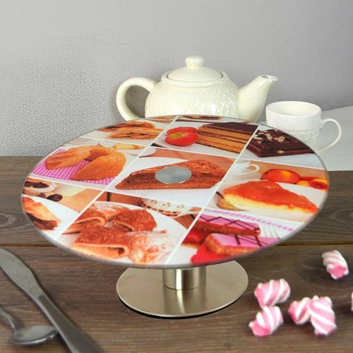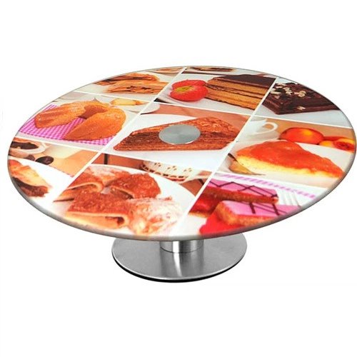 Скляний Поворотний стіл підставка для прикраси торта з малюнком (асорті) 300 мм (59666)