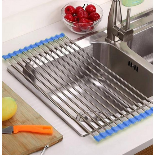 Сушарка скочується в рулон і не займає багато місця, а при необхідності швидко розкладається для сушіння посуду або овочів.