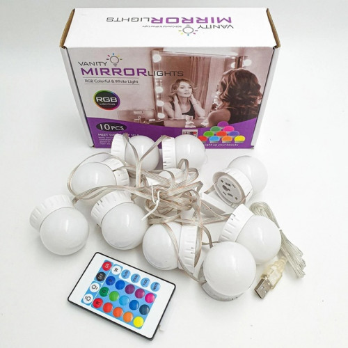 Підсвічування для дзеркала Vanity Mirror Lights з пультом 10 LED ламп RGB з регулюванням яскравості та кольору для макіяжу USB (25720)