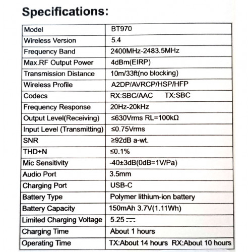 Бездротовий аудіоприймач/передавач Bluetooth адаптер BT970 Bluetooth 5.4 10м (9894)