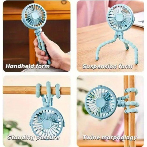 Міні вентилятор акумуляторний з гнучкими ніжками MK-33 Вентилятор восьминог Блакитний (77198)