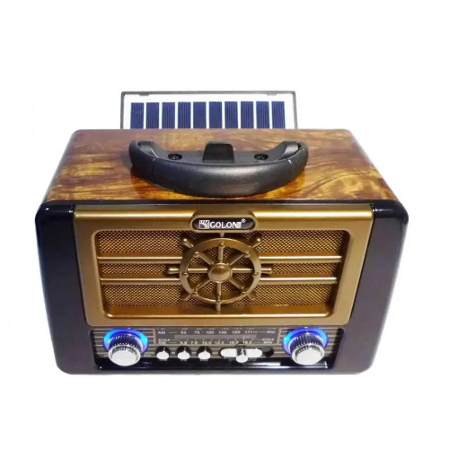 Портативний радіоприймач Golon RX 8080 на акумуляторі з сонячною панеллю Brown (9154)