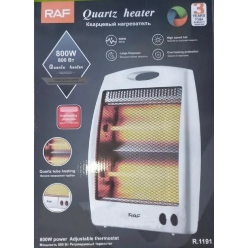 Обігрівач RAF R.1191 має 2 економні лампи по 400 Вт які включаються при необхідності незалежно один від одного, тобто можливі 2 режими роботи з потужністю 400 і 800 Вт. Також обігрівач оснащений таким важливим елементом безпеки як кнопка відключення при перекиданні.