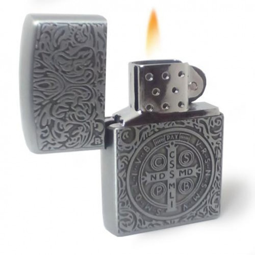 Запальничка газова з гравіюванням. Медальйон Св. Бенедикта. Срібляста (4135)