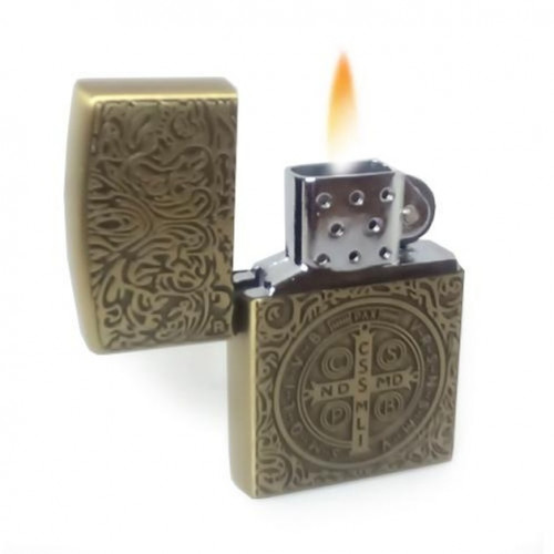 Запальничка газова з гравіюванням. Медальйон Св. Бенедикта. Бронзовий (4135)