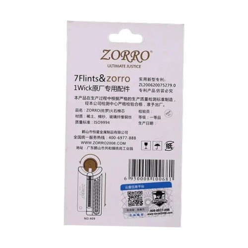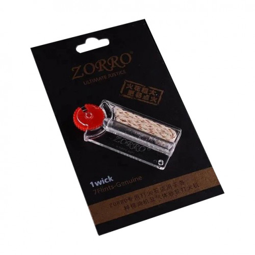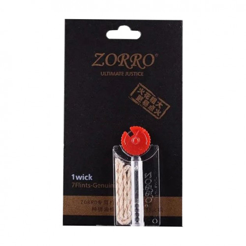 Кремінь та гніт Zorro HL-310 — оригінальний набір аксесуарів для бензинових запальничок. Високоякісний кремінь створює велику іскру, забезпечуючи стабільне запалювання. Гніт довжиною 11 см підходить для тривалого використання. Сумісний із запальничками ZORRO, Zippo та іншими колісними моделями (бензинові, газові, гасові, олійні).